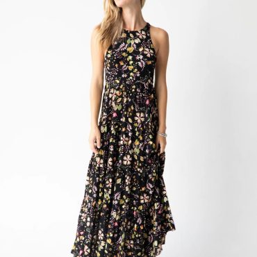 Halle Printed Halter Maxi Dress – Black Floral Stems
