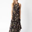 BEAUTIFUL describes the Halle Printed Halter Maxi Dress in one word! This showstopping style ties around your neck and scoops to a lovely low open back. The fitted bodice flows into a tiered full skirt that cascades to maxi length…just right for twirling around the dance floor! We’ve added buttons and a hook and eye closure at the waist. so it’s fitted and flattering. Show off your shoulders with classic halter styling! Wear this black. floral stems-printed beauty at a wedding. on vacation. or just anytime you want to feel AND look pretty. Easy and comfy to wear. you’ll reach for this dress for many different special occasions!
