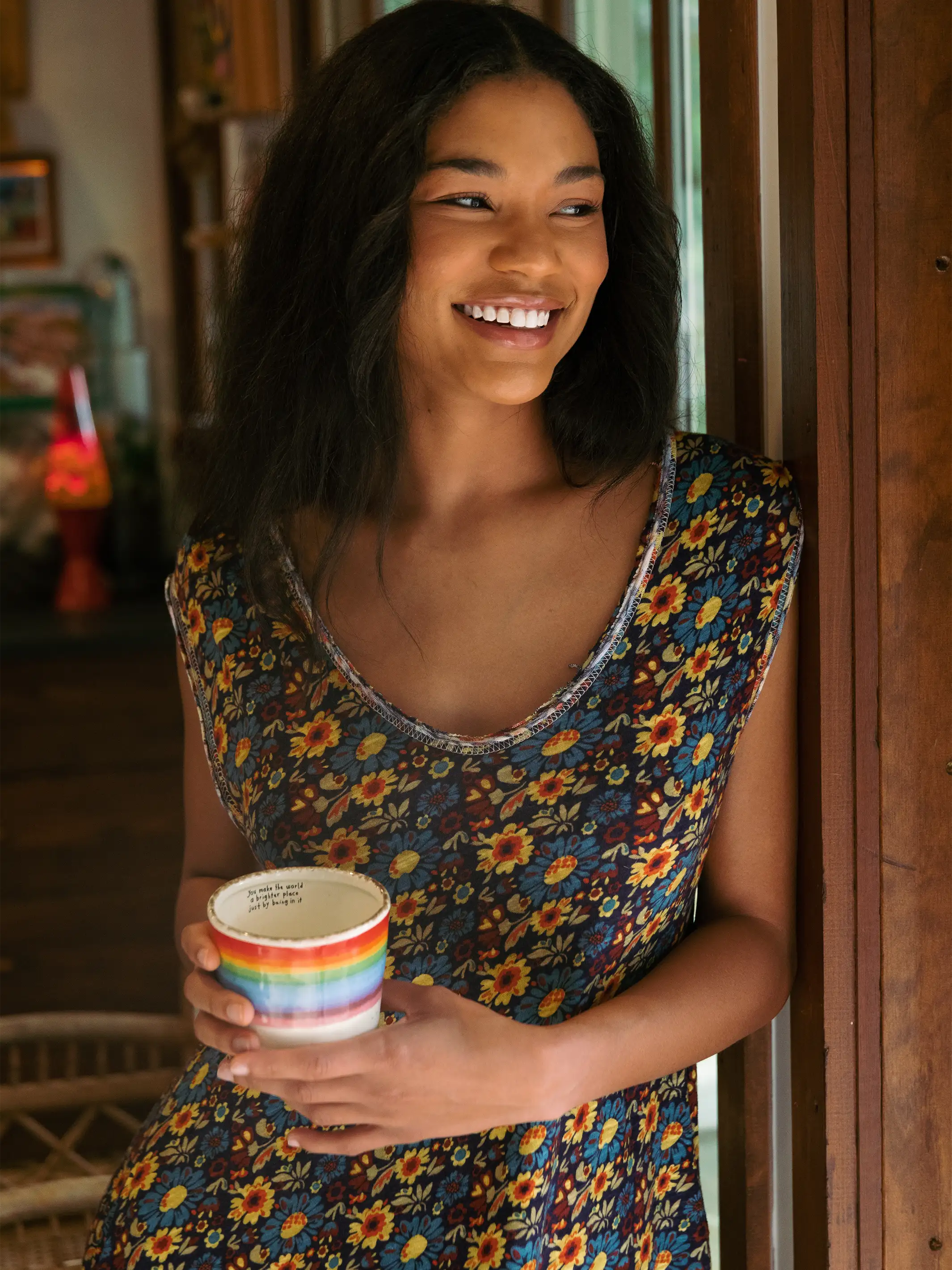 When we say Hangout Dress. we mean it. This navy and olive floral-printed midi dress will have you looking and feeling amazing all the time! Its soft knit fabric. relaxed fit and side slits create a flattering silhouette – and it has pockets! We designed our Hangout Knit Midi Dress with contrast stitching and raw edges for that cool. lived-in look. This dress is a true wardrobe staple that you’ll love to hang out in every day… and be sure to grab our Frankie Knit Tee Midi Dresses for more comfy. laidback T-shirt dress styles!