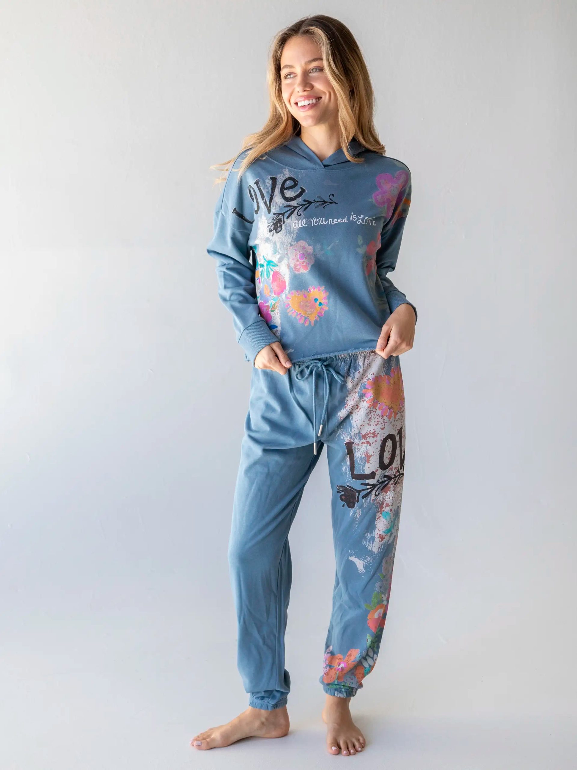 Our Life Is A Canvas Jogger is a style that you’ll want to wear from hanging at home to running errands! With a fun. Love print. these joggers remind us of a painter’s canvas. creating such as unique and artful look. These slate blue joggers have an elastic waist and drawstring so you can adjust it to your comfort. Pair it with our Life Is A Canvas Hoodie and collect all our Life Is A Canvas styles for plenty of comfy-cool looks to wear every day!Â
