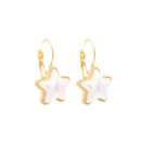 This opalite star is placed in a gold setting and attached to a leverback style huggie hoop earring.