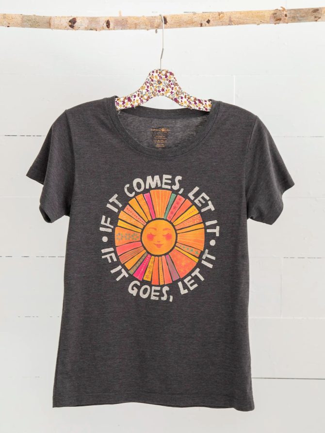 You know that t-shirt… It’s not too big. nor too tight – it fits JUST RIGHT! The Perfect Fit Tee Shirt is true to its name with a slightly slimmer cut. Delightful artwork covers the front of this customer favorite! This classic crewneck t-shirt is an easy choice with anything; try it with a maxi skirt – so cute and unexpected! Super soft + super cute = fabulous gift!