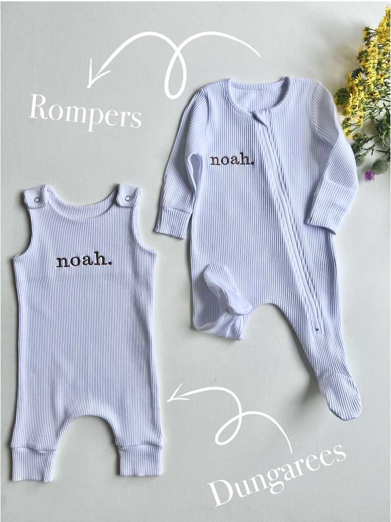 Personalised Baby Zip Romper | Embroidered Baby Overalls . Summer | Autumn | Winter White Sage Outfit Name or Initials UNISEX Clothing