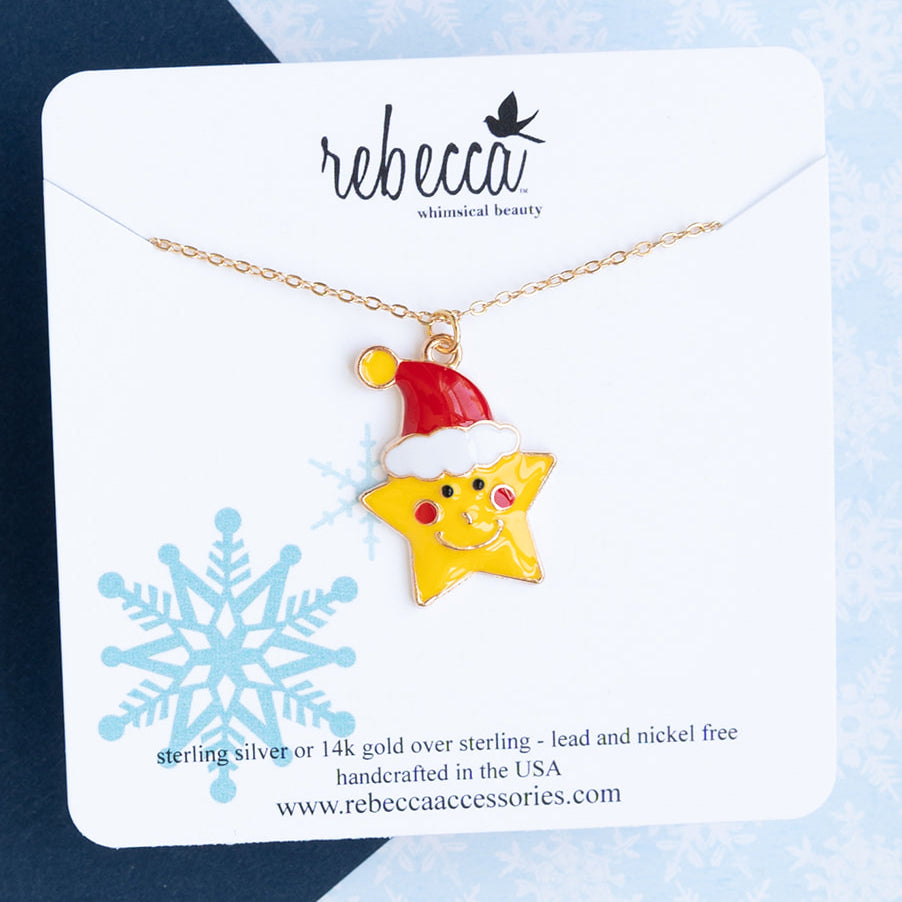 Yellow star with a Santa hat Charm hangs from a 14 chain with 2 extender.