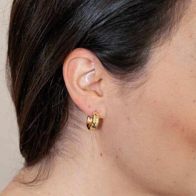 Rainbow color stars are interspersed throughout these gold huggie hoops.